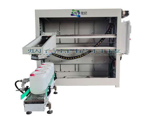 全自動碼(mǎ)垛機是將已經灌裝完畢的小(xiǎo)塑料桶,按一定排(pái)列碼放在(zài)托盤、棧(zhàn)板(木質、塑膠)上,進行(háng)自動堆碼,可堆碼(mǎ)2層,然後推出,便於叉車運至倉庫儲存。本設(shè)備采用PLC+觸(chù)摸屏控製,實現智能化操作(zuò)管理,簡便、易掌握。可大大地減少勞動(dòng)力(lì)和降低勞動強度。碼垛機是輸送機輸送來的料袋、紙箱或是其(qí)它(tā)包裝材料按照客戶工藝要求(qiú)的工作方(fāng)式自動堆疊成垛,並將成垛的(de)物料進(jìn)行(háng)輸送的設備。